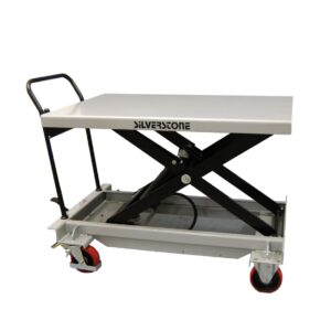 Der Silverstone „SL1001“ ist ein zuverlässiger und hochwertiger Hubtisch und kann sowohl in der Produktion als auch in der Industrie eingesetzt werden. Dieser stationäre Tisch wurde so erbaut, dass Sie für Montage keine Grube benötigen. Mit dem „SL1001“ können Sie mühelos Gegenstände bis 1000 kg auf eine maximale Höhe von 860 mm anheben. Die Tischfläche hat eine Größe von 1140 x 1450 mm.